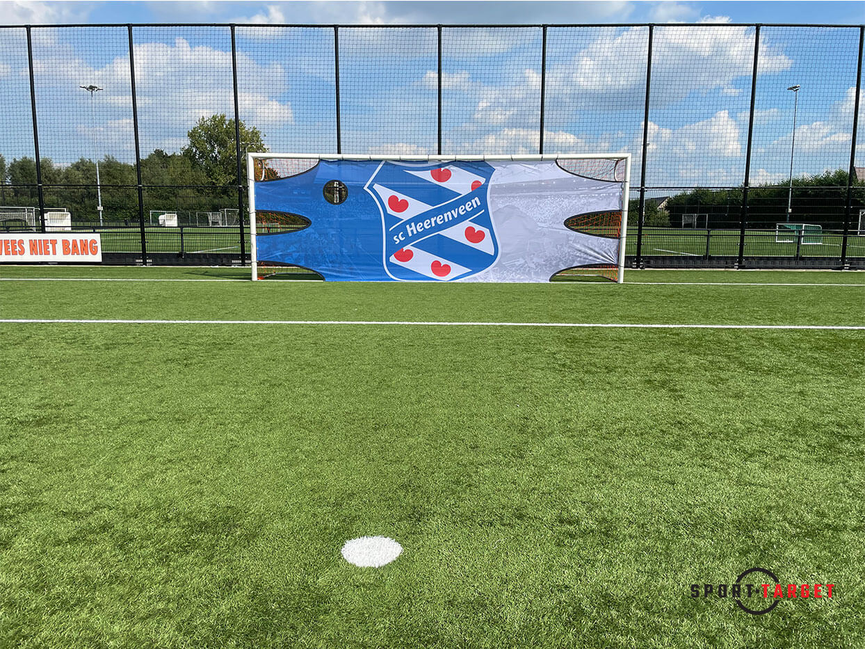 Sporttarget.nl führt die Torwandplanen PRO in zwei Größen. Für ein Schülertor (Junior) in der Größe 5 m x 2 m und für ein Seniorentor (Senior) 7,44 m x 2,44 m.