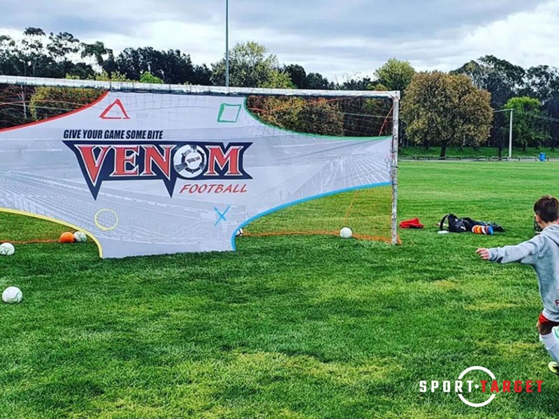 Das Soccer Train Target von Sporttarget ist das ideale Fußball Trainingsziel für effektives Abschlusstraining und Schusstraining. Schluss mit Hütchen im Tor – das Fußball Schussnetz lässt sich schnell und einfach im Tor befestigen und ermöglicht ein zielgerichtetes Torschusstraining.