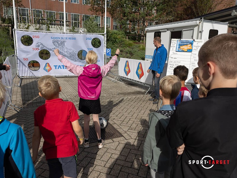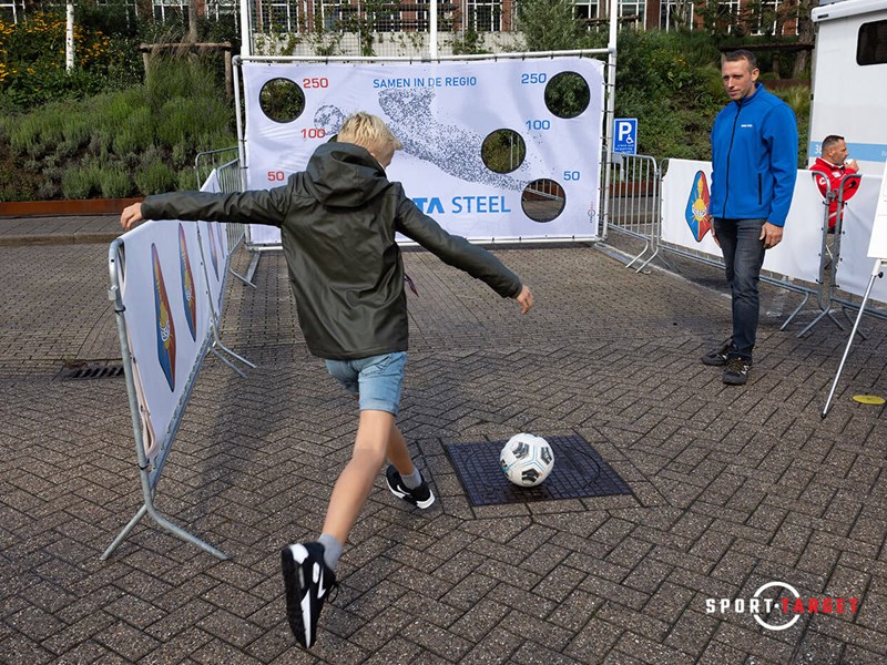Im Auftrag der SC Telstar lieferte Sporttarget das Werbesportziel. Für den Messeauftritt stellte sportspromo ein Tor mit Fußballzielscheibe im eigenen Design zur Verfügung.