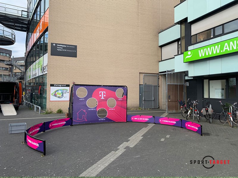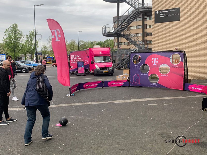Sporttarget lieferte im Auftrag von T-mobile die sportliche Werbescheibe von T-mobile. Für die Promotion-Tour lieferte Sportspromo ein Tor mit Fußballscheibe und ein Panna-Feld im eigenen Design.