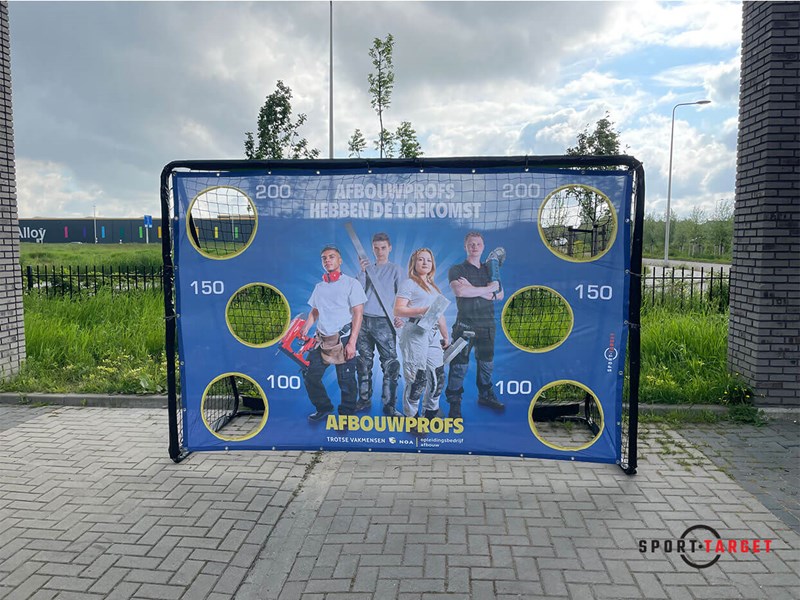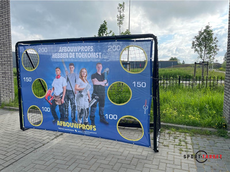 In unserem Sortiment bieten wir die Möglichkeit eines einfach zu bauenden Tores für vor Ort mit einem Sporttarget. Die perfekte Gelegenheit, Ihrer Promotion vor Ort eine sportliche Note zu verleihen.