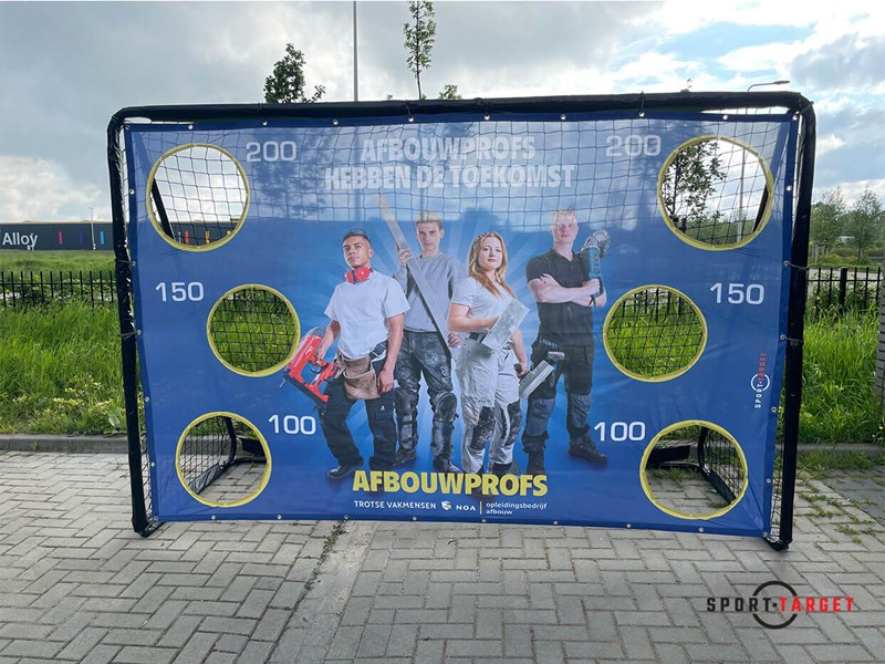 Im Auftrag der Trainingsfirma NOA lieferte Sporttarget das Werbesportziel. Für den Messeauftritt stellte sportspromo ein Tor mit Fußballzielscheibe im eigenen Design zur Verfügung.