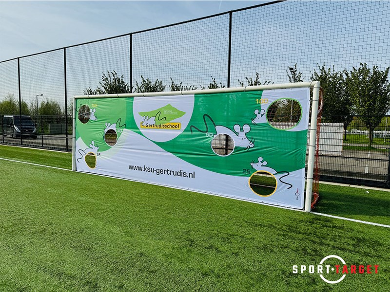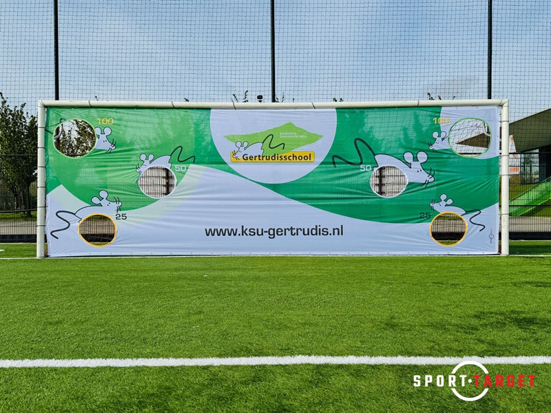 Welche Aufregung, mit der Gertrudisschule Utrecht zusammenzuarbeiten und ihren Spaß mit unserem maßgeschneiderten Fußballziel auf ein neues Niveau zu heben! Mit Stolz präsentieren wir dieses Ziel, das ihr einzigartiges Logo zeigt und ein charmantes Detail enthält - eine neugierige Maus, die in die Torlöcher schaut.