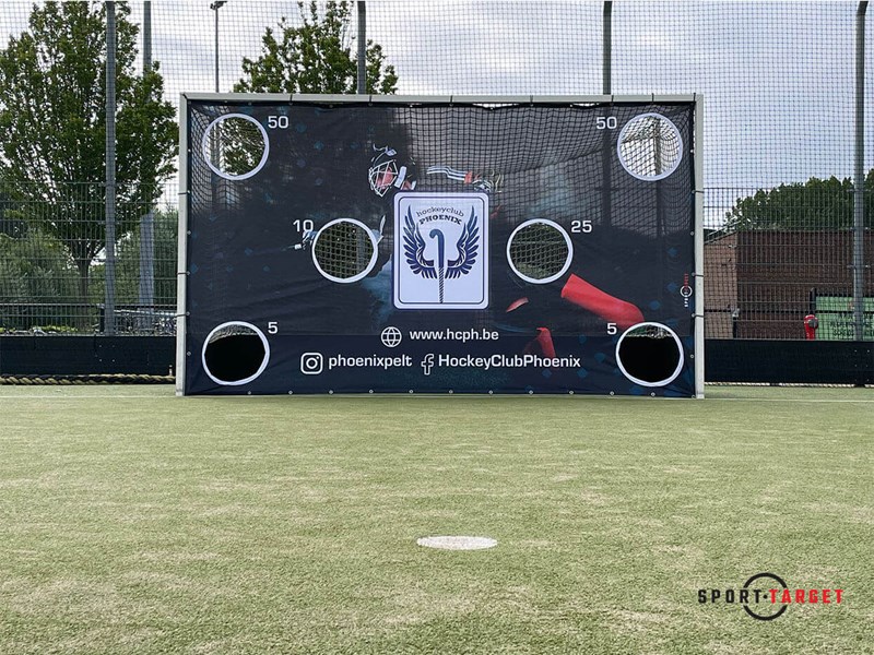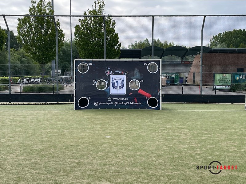 Sporttarget lieferte die Hockey-Targets von Phoenix aus Lommel, Belgien. Das Design mit dem Phoenix-Logo wird für Vereinsaktivitäten und als sportliche Werbung eingesetzt. Ein lustiges Spielelement mit natürlich einer besonders schönen Werbung für den Verein.