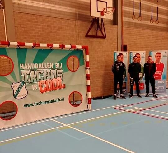 Voor handbalvereniging HV TACHOS mochten wij een Handbalsportgatendoek ontwerpen.