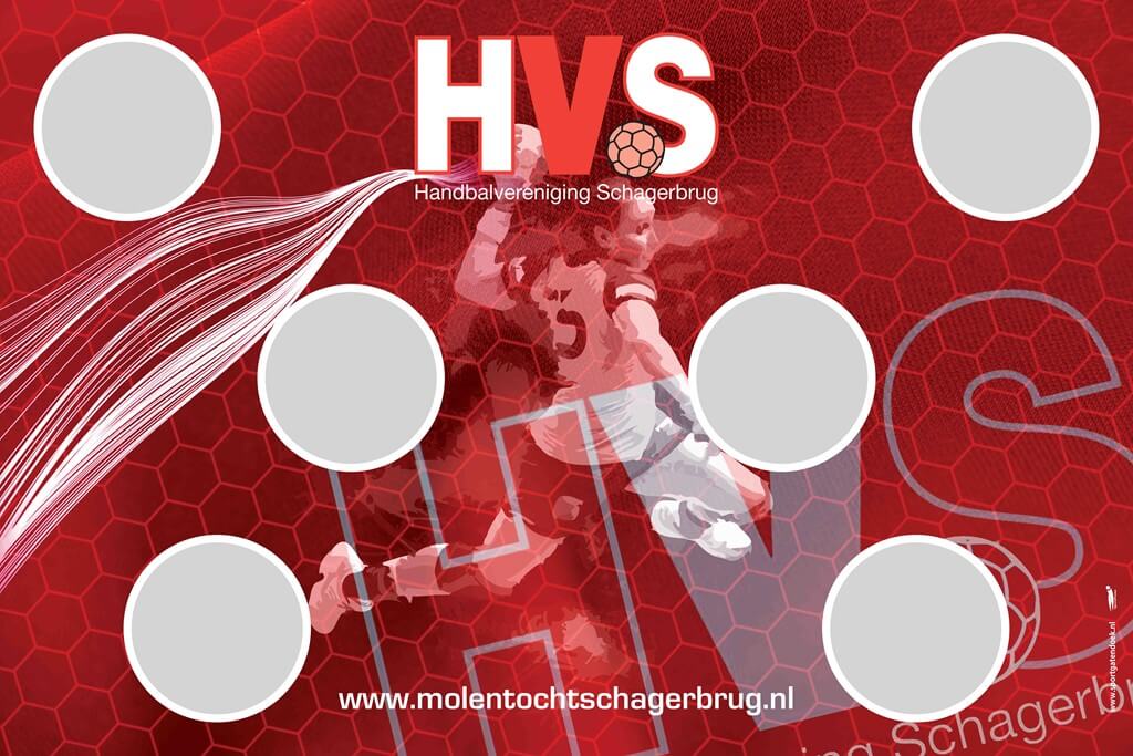 Voor handbalvereniging HVS SCHAGERBRUG mochten wij een Handbalsportgatendoek ontwerpen.