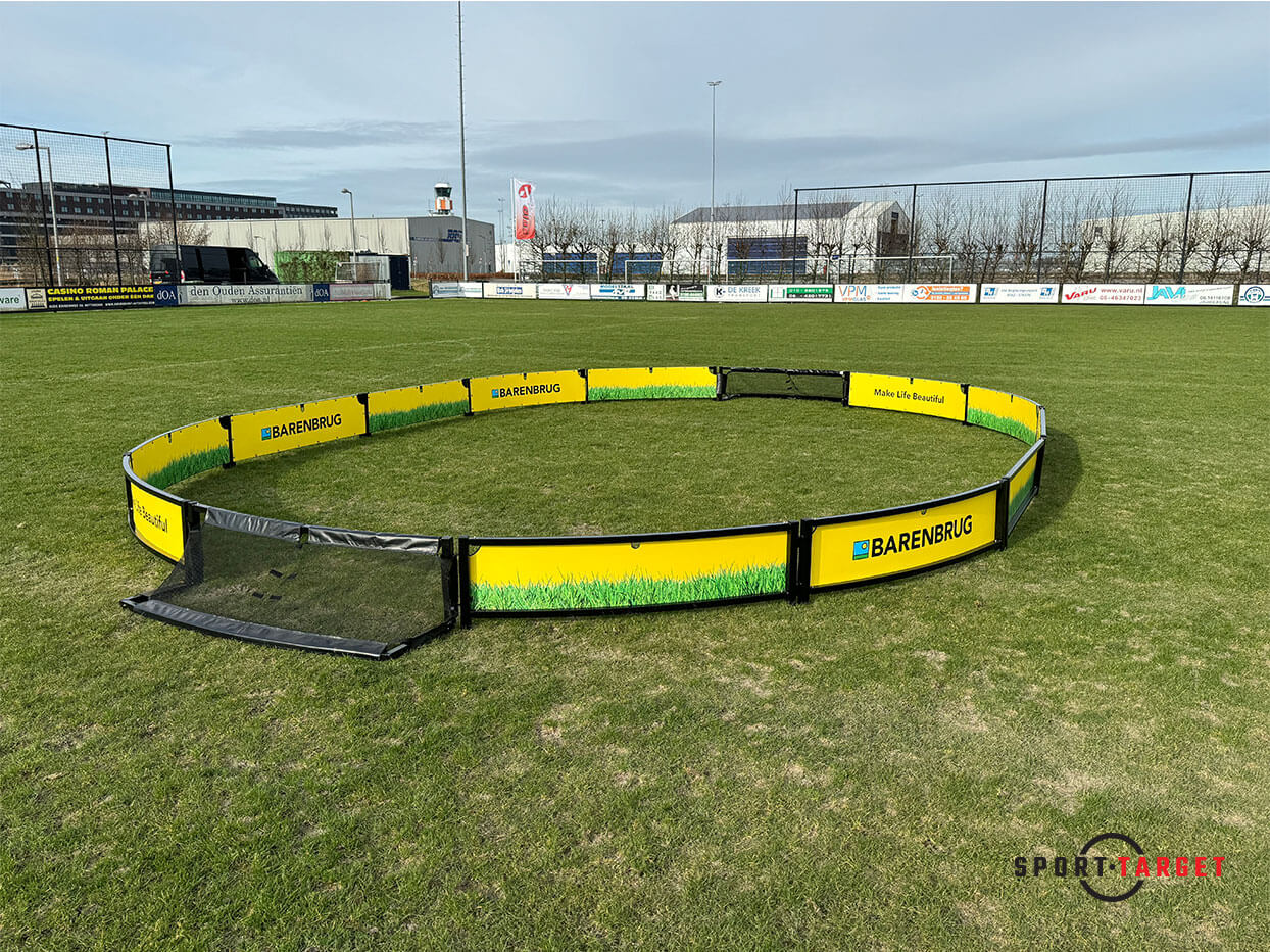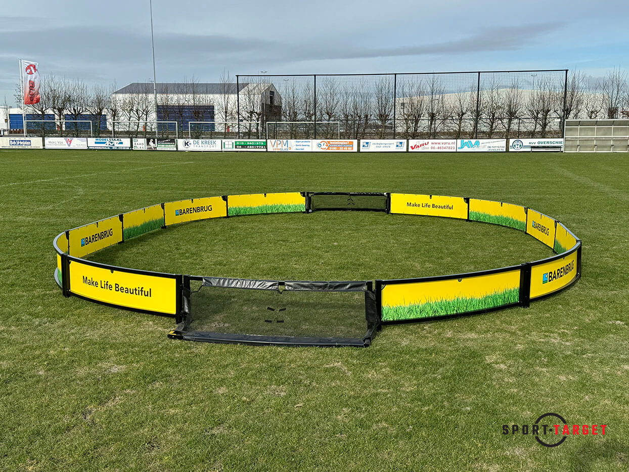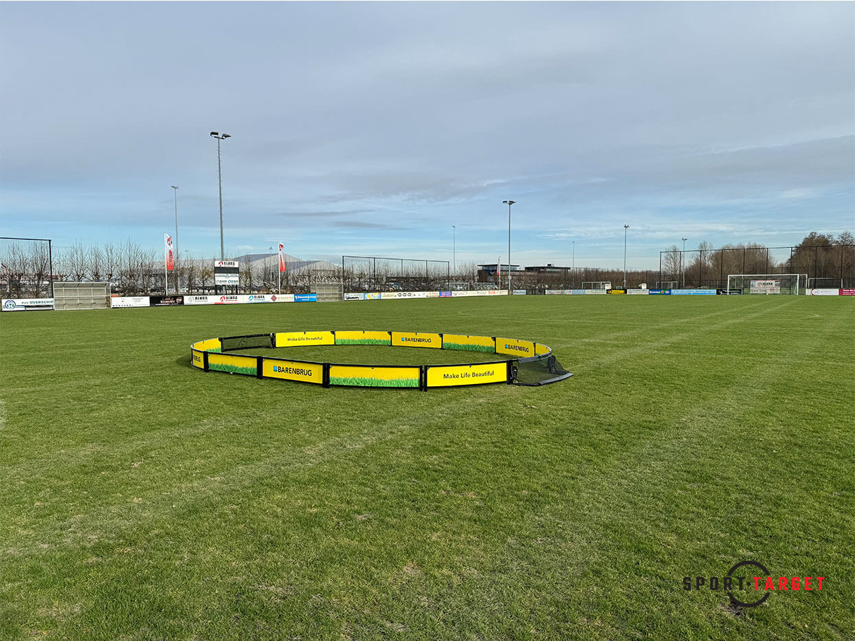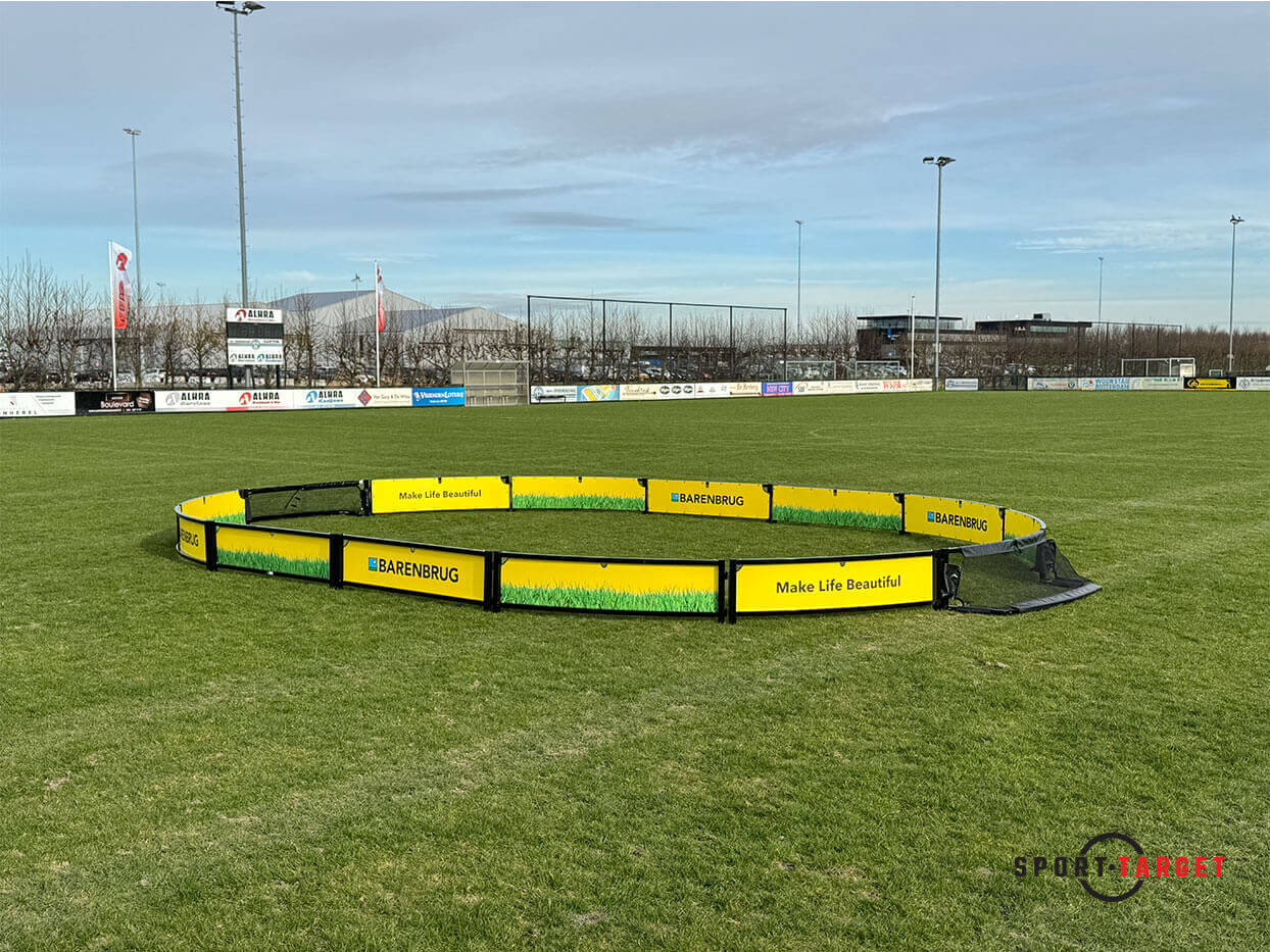Het Barenbrug Pannaveld is een visueel spektakel met een opvallend geel design dat moeiteloos de aandacht trekt op elk veld. Dit unieke ontwerp dient niet alleen als een promotiemiddel voor het merk Barenbrug, maar biedt ook een ongeëvenaarde sportieve ervaring.