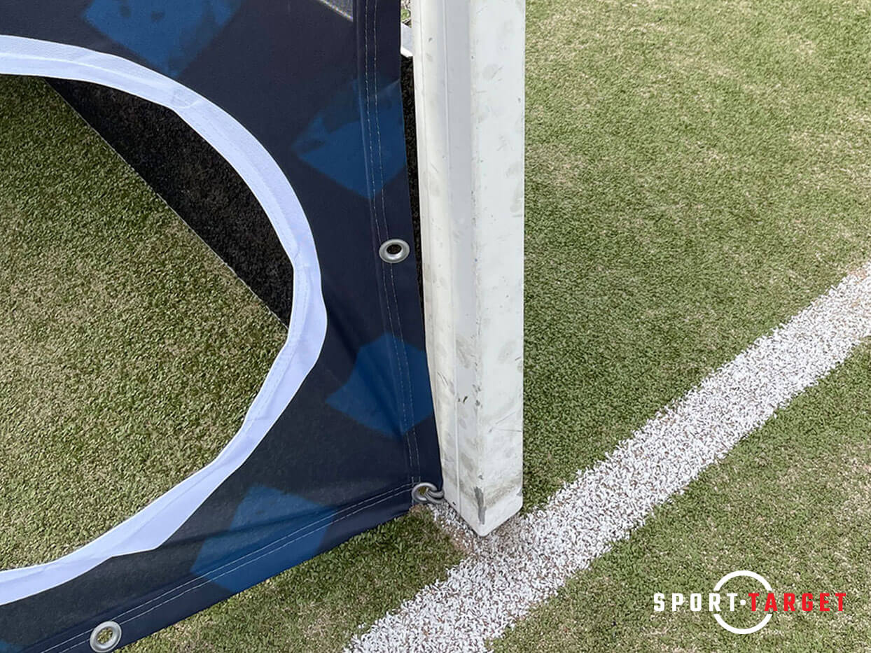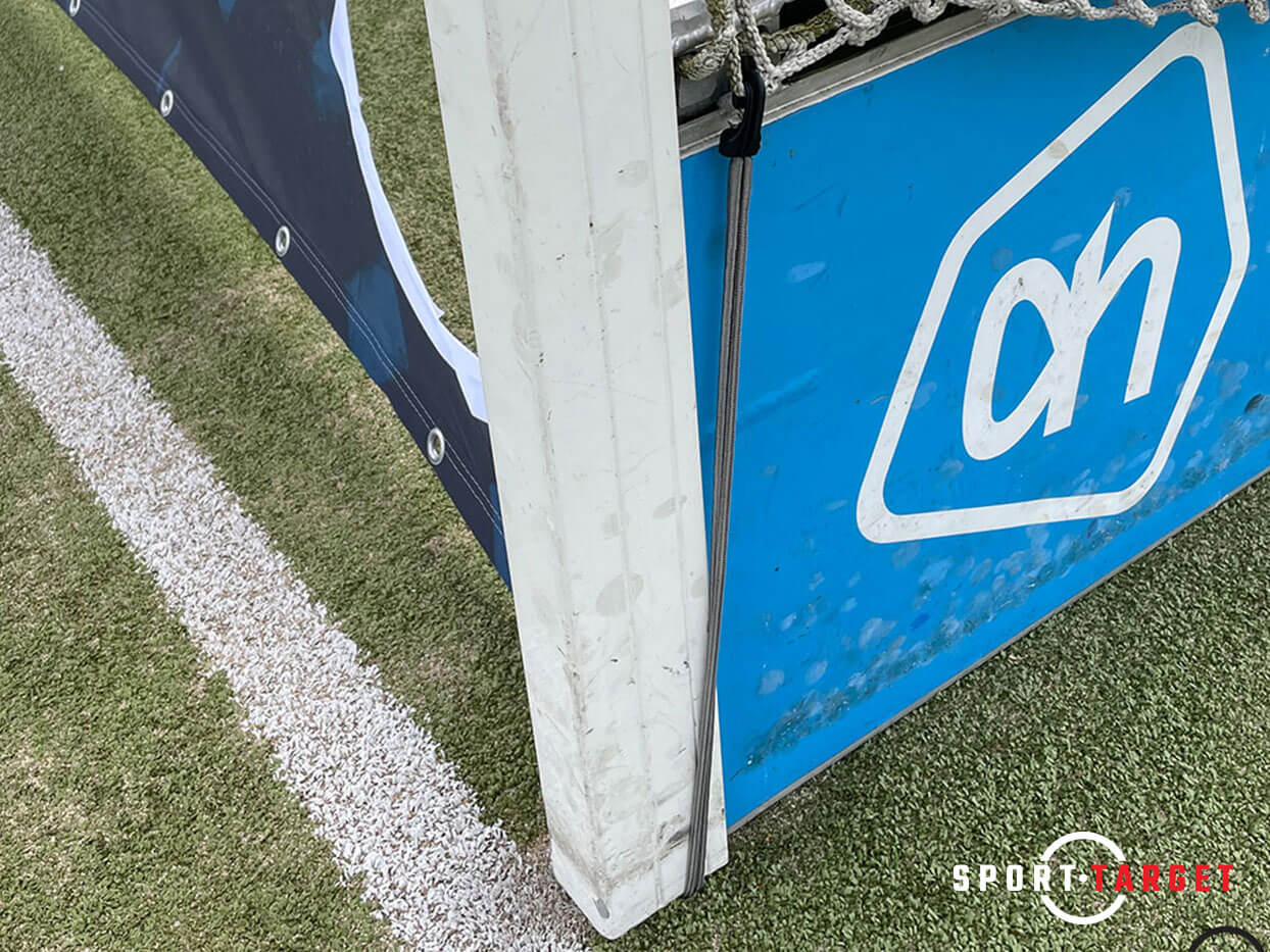 3. Haal de meegeleverde spanners door het oog van de target en span deze vervolgens om de paal en de lat van het doel. Zorg ervoor dat de target stevig is vastgezet.