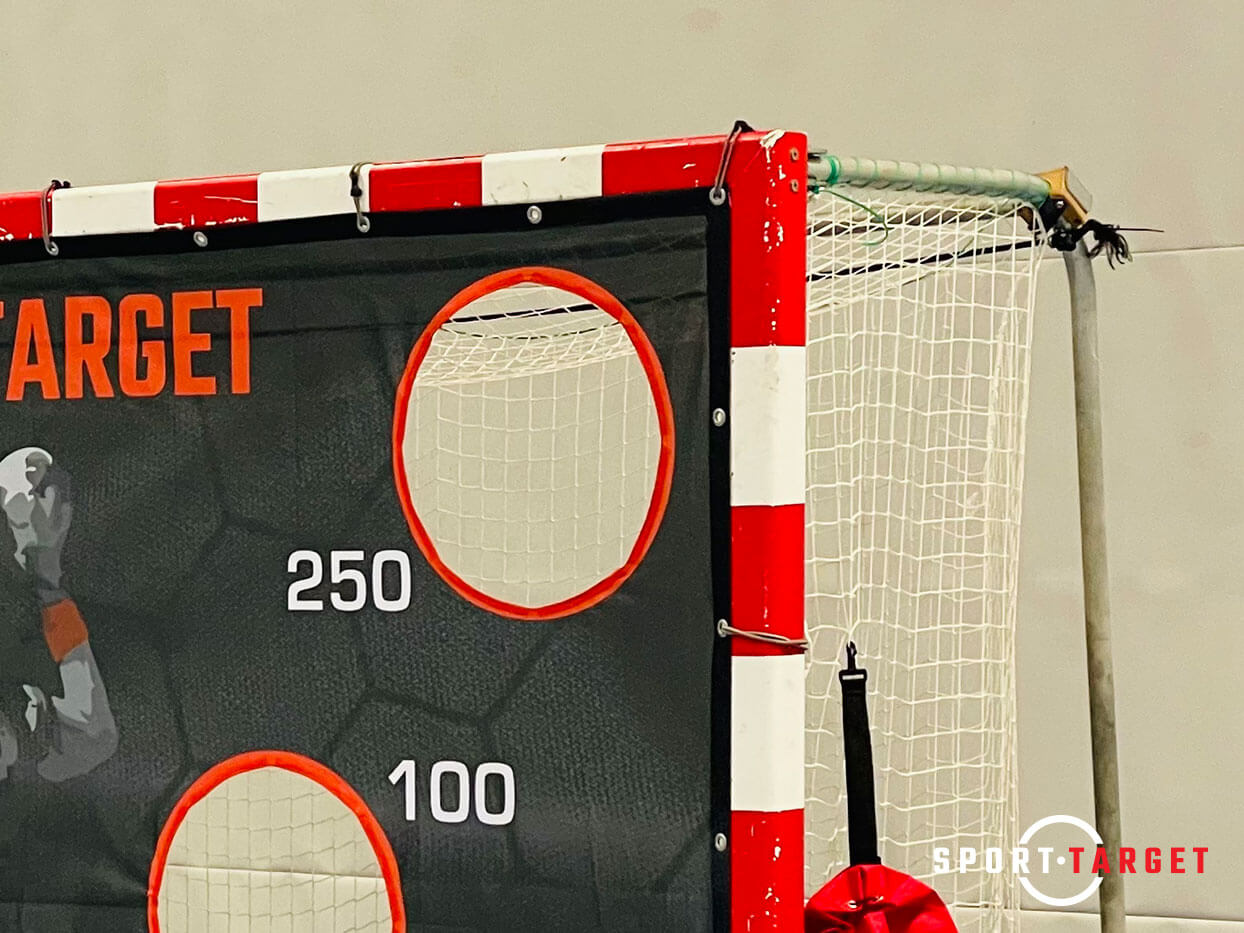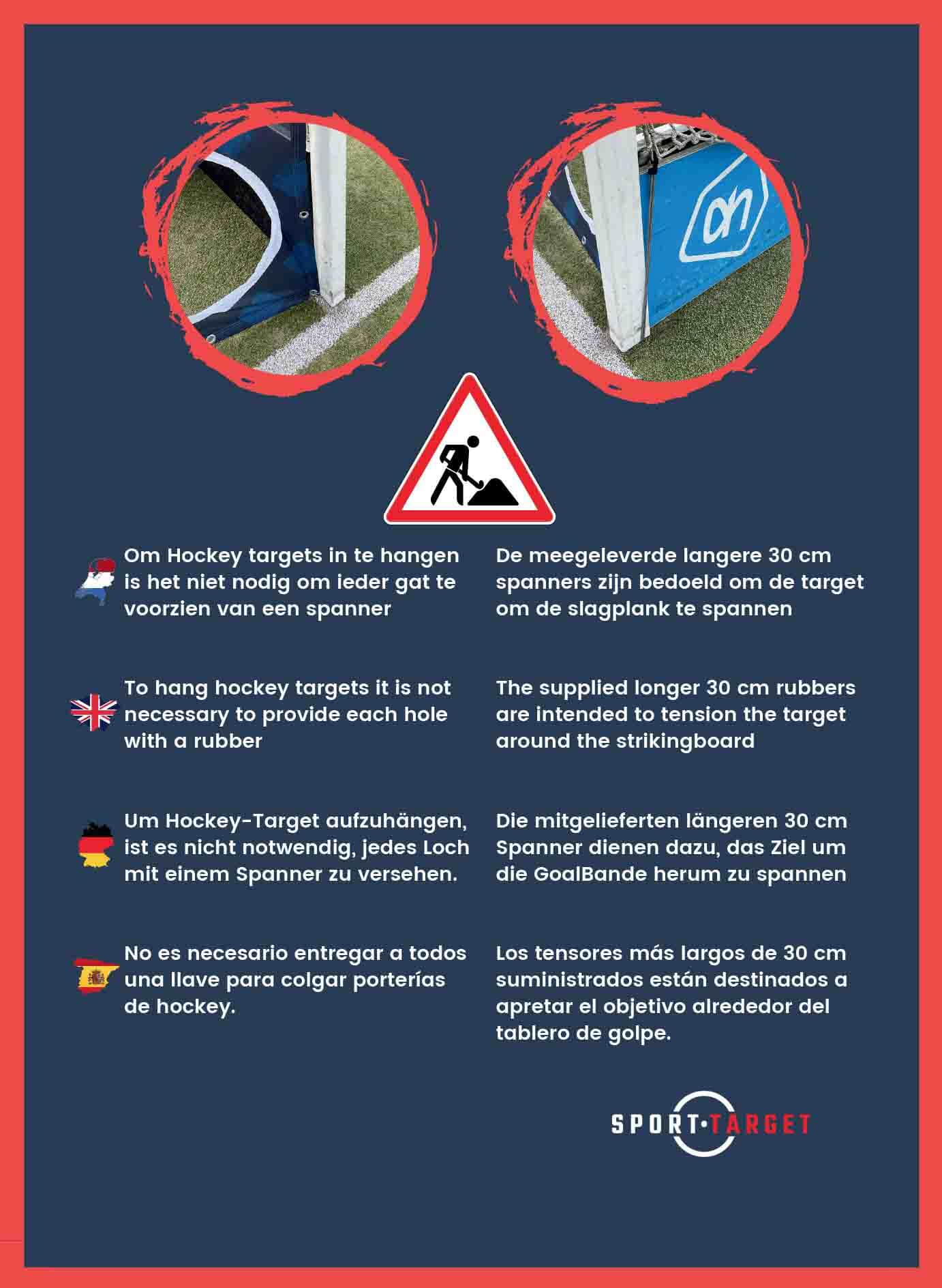 5. De meegeleverde langere 30cm spanners zijn bedoeld om de target om de slagplank van de hockeygoal te spannen